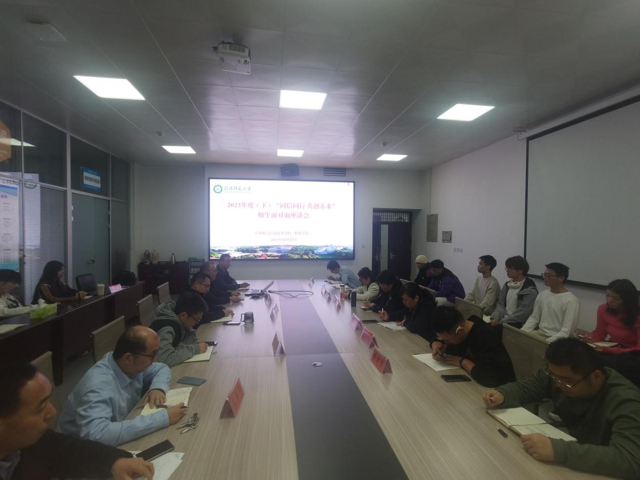 2023年11月21日下午,我院在计算机楼203会议室召开“同信同行 共创未来”师生面对面座谈会。学院班子成员、教学督导专家、系(实验室)主任、实习实训中心主任、教学工作秘书、各班级学生代表等40余人参加了座谈会。会议由副院长刘道华教授主持。