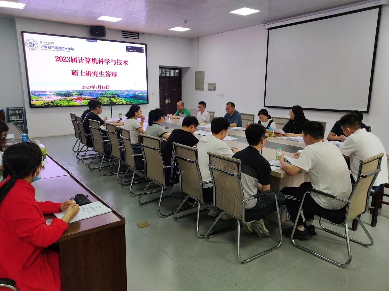 5月18日下午13点,我院2023届研究生硕士学位论文答辩会在计算机楼203会议室以线上线下混合的方式顺利举行。