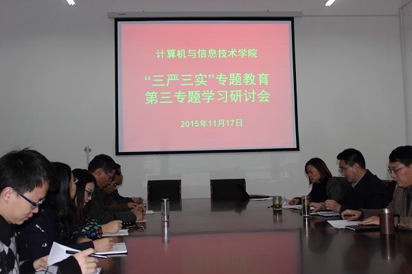 按照校党委“三严三实”专题教育活动安排,11月17日下午,williamhill中国党委中心组成员(扩大)在学院小会议室召开了“三严三实”第三专题学习研讨会。学习研讨会由学院党委书记刘党英主持。