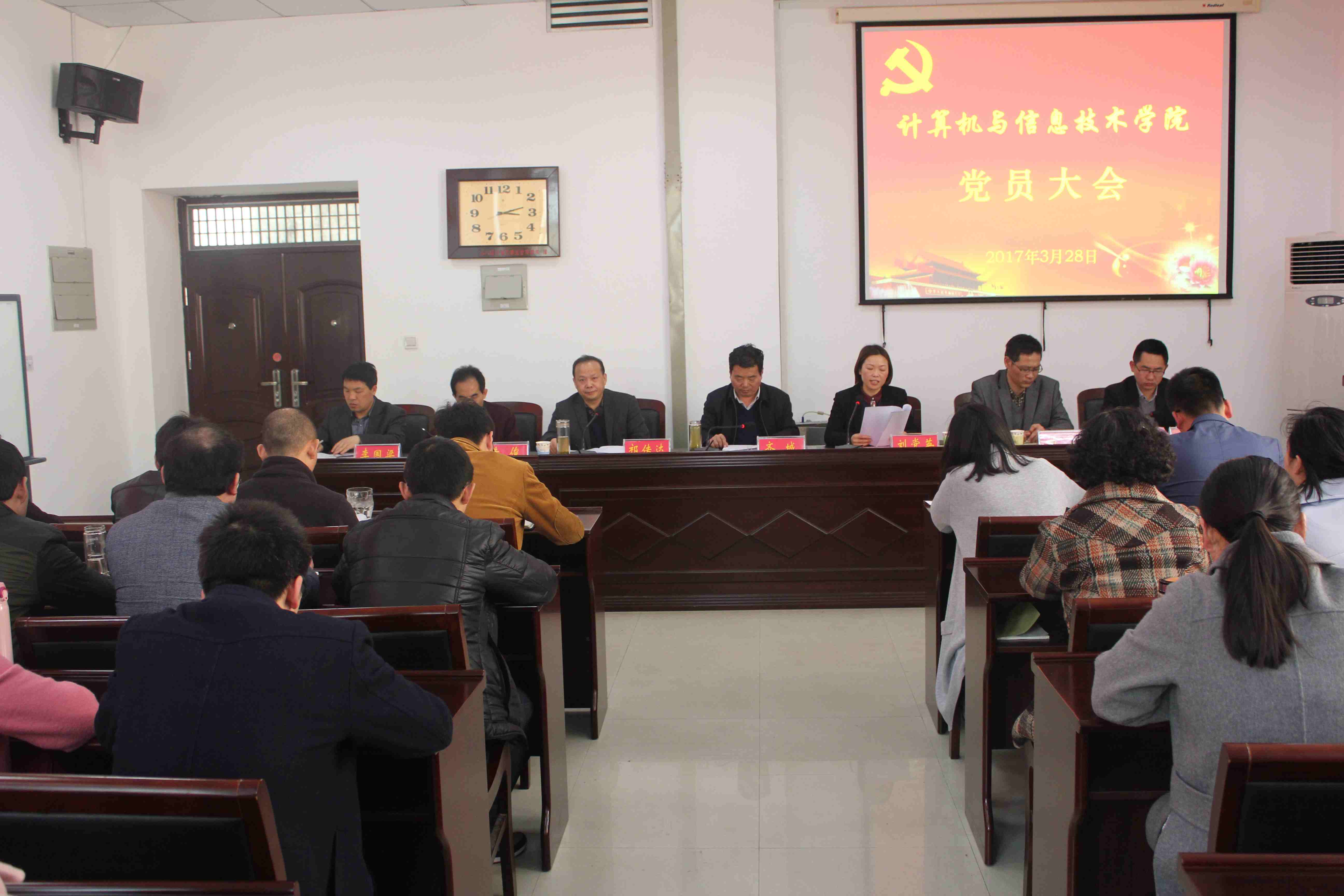3月28日下午,williamhill中国党委换届选举党员大会在计算机楼410会议室隆重举行。副校长齐城到会指导并做重要讲话,大会由院长祁传达主持,全体教工党员和学生党员参加了大会。