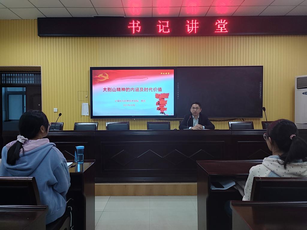 10月14日,我院“书记讲堂”暨党史学习教育专题报告会在计科楼410举办,学院党委书记熊炎作《大别山精神的内涵及时代价值》专题报告,我院全体学生党员和学生干部代表现场聆听报告。
