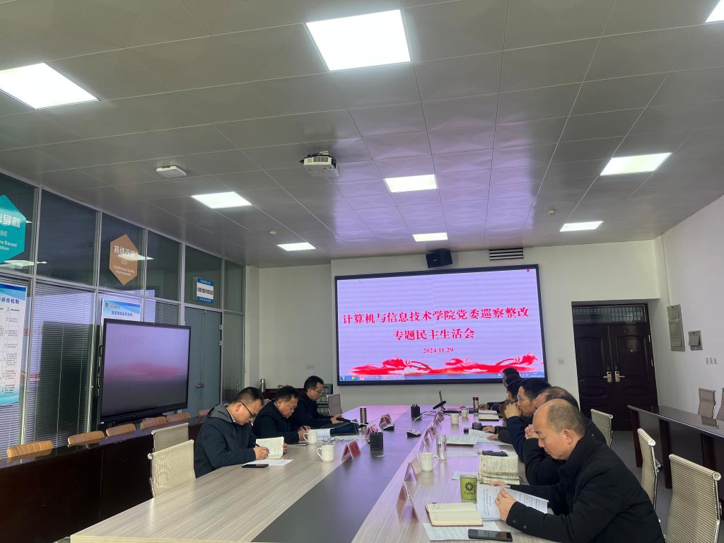 11月29日,williamhill中国党委在计算机楼203会议室召开巡察整改专题民主生活会。校党委第二轮巡察第二巡察组组长周经兵、校党委巡察办主任王振海和校党委组织部副部长冀鹏到会督导。学院党委领导班子全体成员参加会议,会议由学院党委书记熊炎主持。