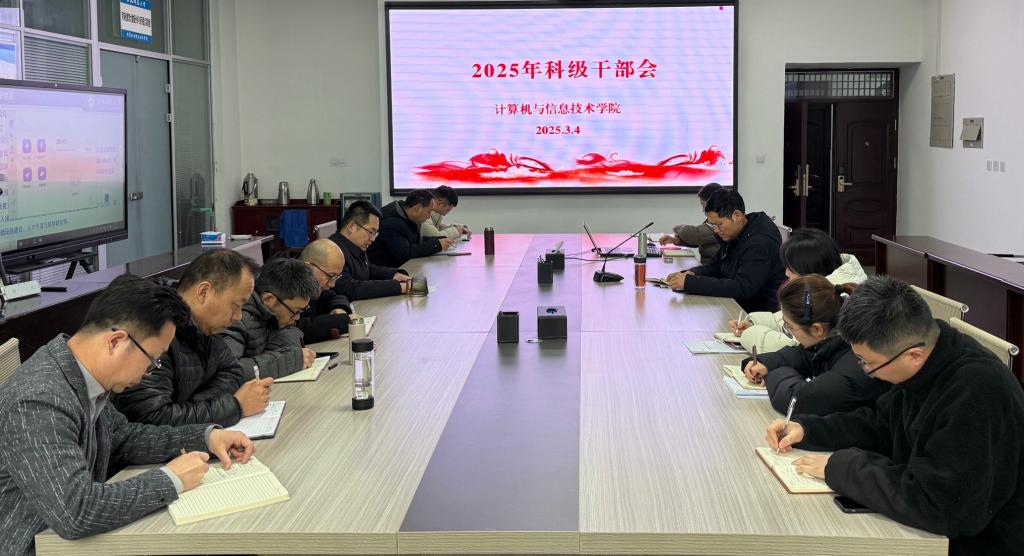 2025年3月4日,我院在计科楼203会议室召开科级干部工作会议,学院党委书记熊炎、院长冯岩及全体科级干部参会。