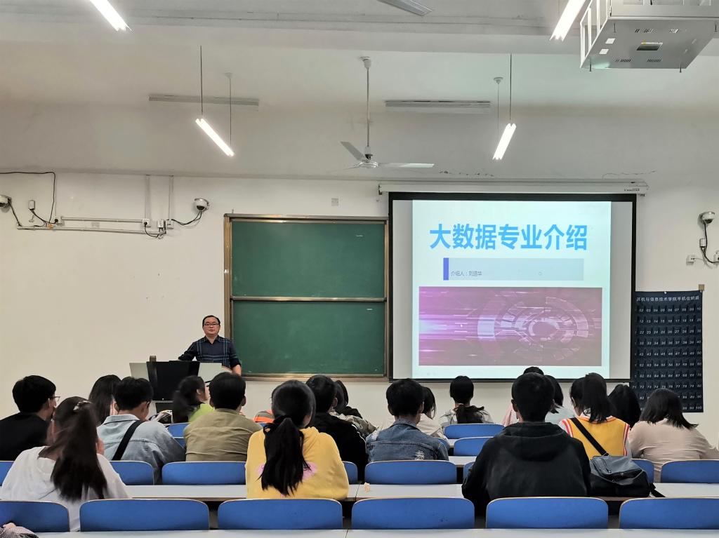 为促进数据科学与大数据技术专业新生对所学专业的了解,williamhill中国于10月21日下午,在计科楼104教室开展数据科学与大数据技术专业新生思想系列教育讲座。2019级数据科学与大数据技术专业全体同学参加此次会议。会议邀请我院数据科学与大数据技术专业系主任刘道华教授作报告。