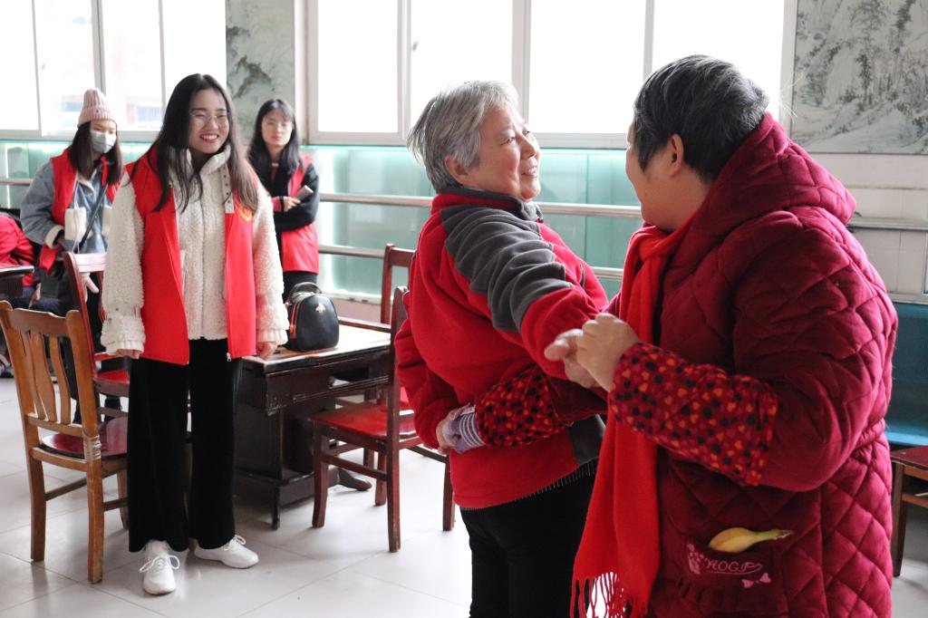 志愿者们带着水果、糕点等礼物,结队进入敬老院。老人们热情地欢迎,并与志愿们闲聊家常,询问志愿者们学习和生活上的相关情况。畅聊过后,志愿者们为老人们表演了《外婆的澎湖湾》、经典豫剧《刘大哥讲话》等节目,希望可以丰富老人们的生活。观看表演的老人们十分高兴,跳起了广场舞,与志愿者们亲密互动,屋子里充满欢声笑语。活动最后,志愿者们为老人们打扫床铺、擦桌子、拖地、洗衣服等。同时,为了老人行走方便,志愿者们帮忙打扫了敬老院庭院的落叶。