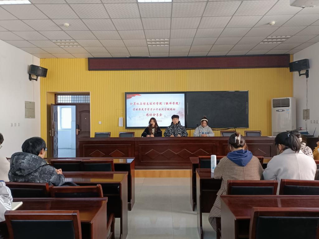 为深入学习贯彻习近平总书记贺信精神,全面贯彻落实全国学联二十七大会议精神,激发我院广大青年学生坚定跟党走、奋进新时代。11月24日,学院学生会在计科楼410会议室集中开展全国学联二十七大会议精神学习。院学生会主席团和部门负责人参加此次会议,会议由时东齐主持。