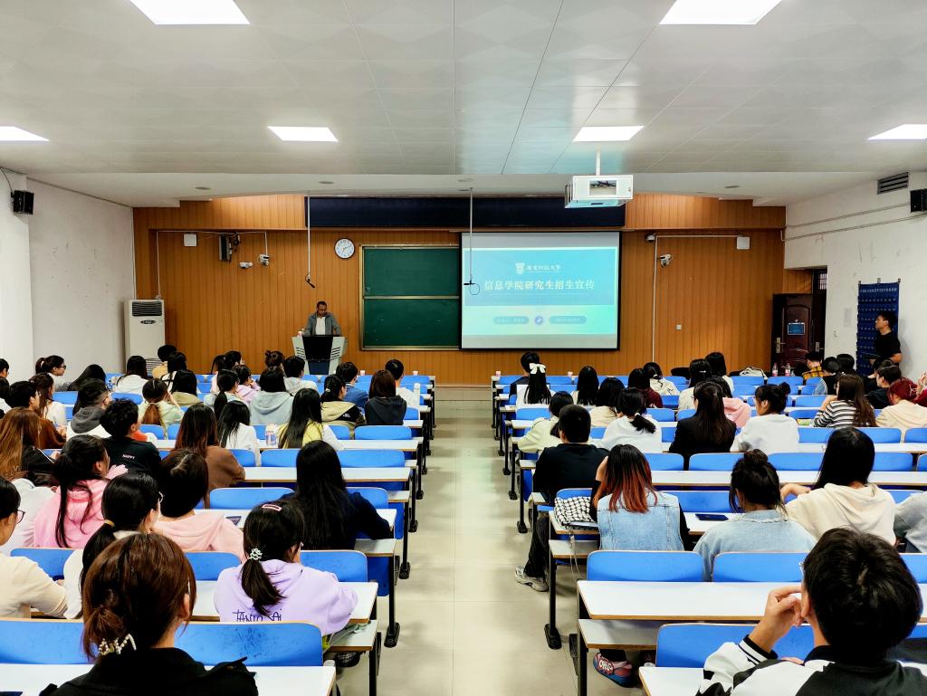 10月9日,广东财经大学信息学院研究生招生宣讲会在我院在计算机楼107教室成功召开。广东财经大学信息学院胡建军博士莅临现场开展宣传动员,我院学生广泛参与,会议由学院就业秘书王丝雨主持。