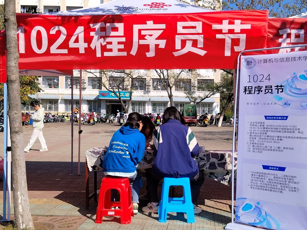 10月22日至23日,我院在八餐小广场顺利举办“1024程序员节——青春追梦,加油未来”庆祝活动。活动吸引大批学生和教职员工参与,现场氛围热烈。活动现场,参与者积极尝试各类编程挑战和技术讨论,努力将平日所学运用到具体实践中。同时,活动还设有计算机知识答题游戏环节,参与者分别组队参赛,通过丰富的知识储备与默契的团队配合,生动而圆满地完成了一系列有奖问答。