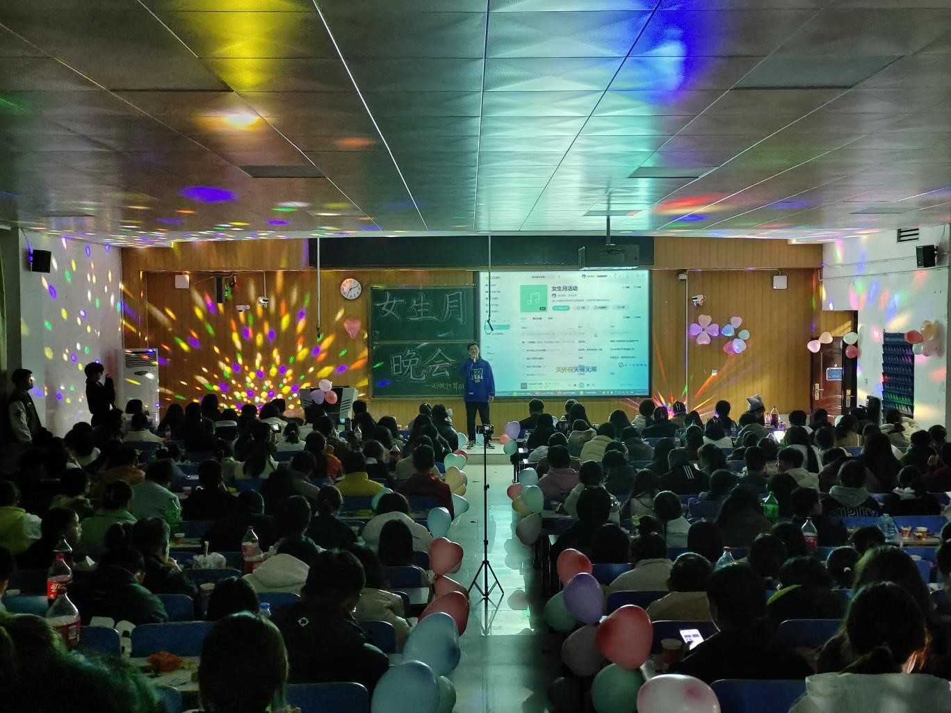 11月15日晚,我院于计科楼107教室举办女生月晚会,2023级辅导员易雯雯、朱鑫辉和23级学子欢聚一堂,在欢声笑语中庆祝女生月,由王文烜和赵诗涵主持。