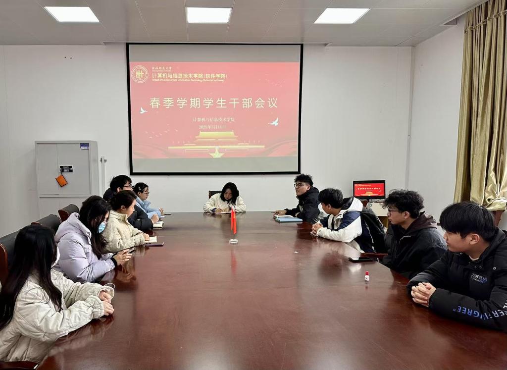 为进一步提升学生干部的责任意识和工作能力,确保新学期各项学生工作的顺利开展,我院于3月11日在计科楼408会议室召开春季学期学生干部会议。团委老师易雯雯、学生会执行主席王振阳及各部门负责人参加会议。