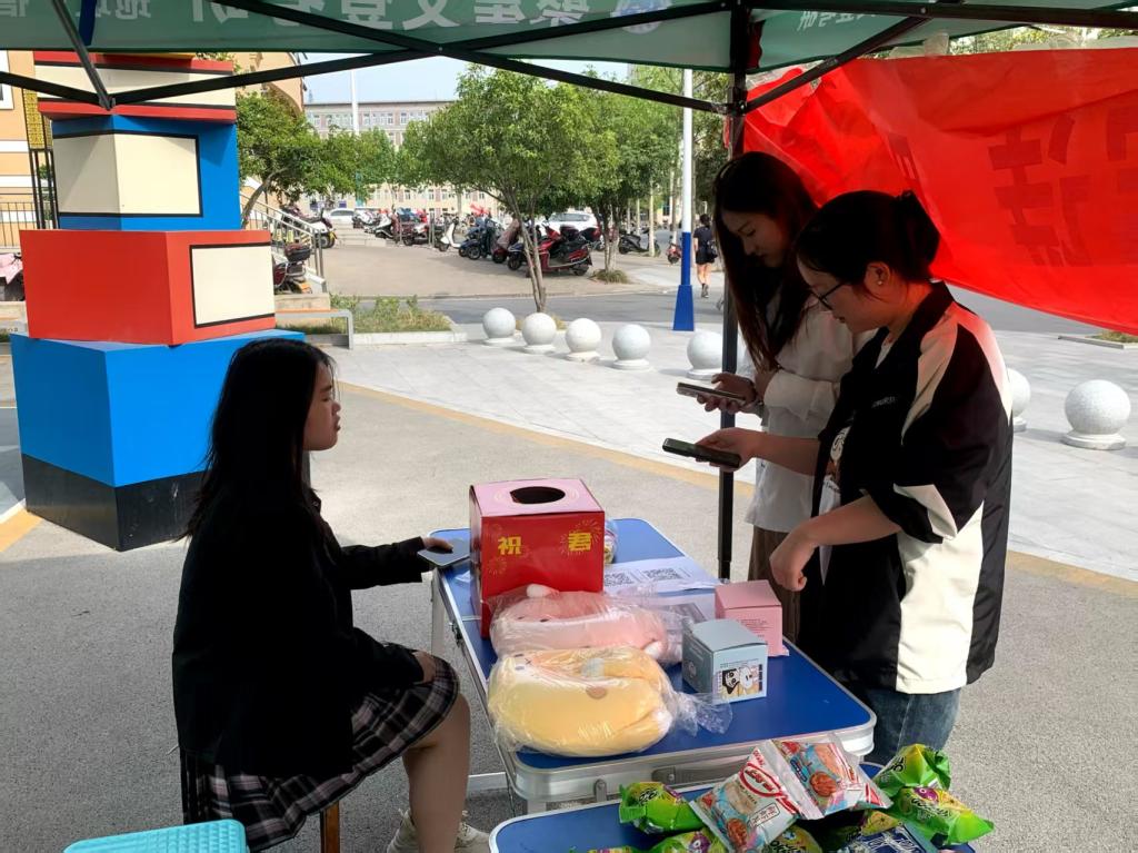 融媒体中心成员提前布置场地,搭建主题帐篷、摆放抽奖礼盒、分装活动奖品及零食礼包,做好充足准备。活动开始后吸引了许多师生驻足。参与者通过扫码关注学院抖音、微博及公众号即可参与抽奖,奖品包括马克杯、U型枕、毛绒手环及定制零食礼包。现场氛围热烈,欢声笑语不断。下午,融媒体中心全体成员在计科楼107教室欢聚一堂,分享定制生日蛋糕,领取计小科专属周边纪念品,成员们感受到了融媒体中心大家庭的温暖与关怀。