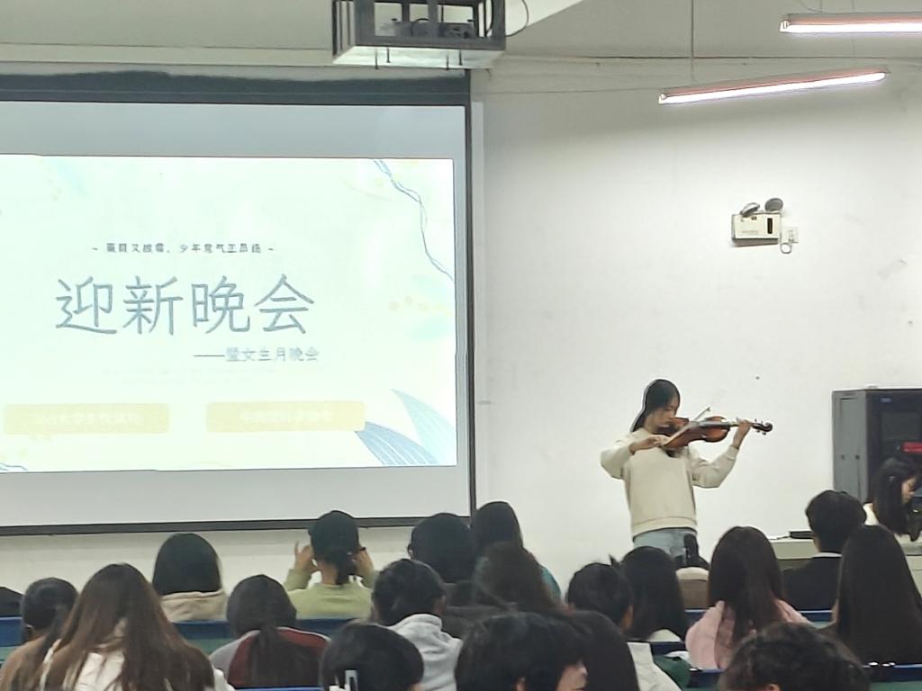 此次晚会以舞蹈《随波逐流》精彩启幕,节目形式丰富多样、内容充实饱满,充分彰显了学子们的青春活力。 歌曲表演中,《七月上》清新悠扬、《鹿befree》励志向上,同学们以扎实唱功传递真挚情感;舞蹈节目精彩纷呈,《舞蹈串烧》活力满格、《猪猪侠》童趣盎然,将现场气氛推向了高潮。此外,小提琴独奏的悠扬旋律涤荡心灵,相声表演的幽默包袱妙趣横生,魔术《水消失木》的奇幻效果令人赞叹不已。最后,晚会在歌曲《李白》的婉转旋律中画上圆满句号。