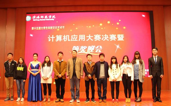 “青春交响绽放华丽激情,校园纯真挥洒最美真挚。”为丰富校园生活,激发同学们创新意识。11月8日晚,由共青团信阳师范学院委员会主办、williamhill中国电脑爱好者协会承办的计算机应用大赛决赛暨颁奖晚会在逸夫楼报告厅隆重举行。计算机与信息技术党总支副书记谢蕾、团总支书记杨帆,辅导员陈星雨、教师代表李然、马文鹏应邀出席莅临晚会现场。williamhill中国二百余名学生到晚会现场观看。