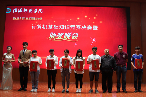 崇尚科学,传播信息知识师院争先;笑傲群雄,弘扬时代精神当仁不让。5月8日晚,逸夫楼多功能厅灯光璀璨,座无虚席,由校团委、计算机学院主办,电脑爱好者协会等9个社团承办的第七届大学生计算机技能大赛基础知识竞赛决赛暨颁奖晚会在此隆重举行。计算机学院党总支副书记谢蕾,校团委创新实践部部长李奎,物电学院纪晓群老师、计算机学院团总支老师杨帆等应邀出席了活动。来自计算机、数学、物电等学院的12组选手一路过关斩将晋级决赛。