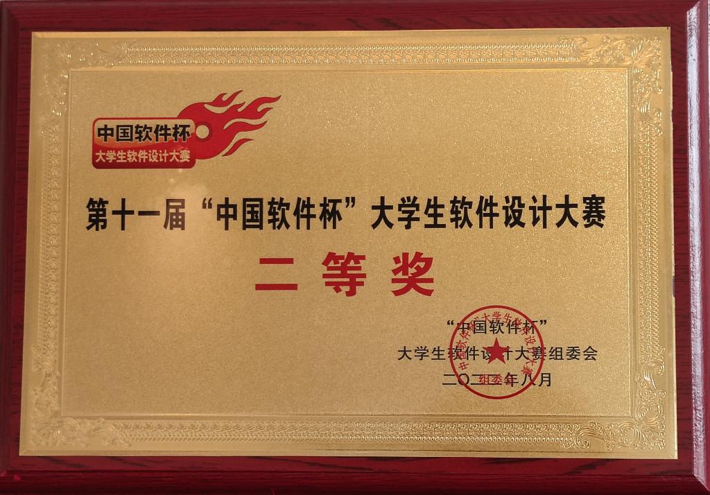 8月13日至16日,由工业和信息化部、教育部和江苏省人民政府联合主办的第十一届“中国软件杯”大学生软件设计大赛在南京航空航天大学举行。我院软件工程、物联网工程专业学生陶沛霖、祝新明、卢俊杰和赵航语组成的参赛队(指导教师:尤磊),荣获全国二等奖。
