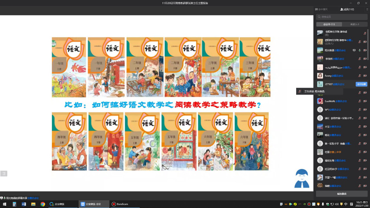 11月20日上午,应河南省中小学教师校长研修院邀请,河南省基础教育课程与教学发展中心教研部主任张琳为国培计划 (2022)“一对一”精准帮扶学校培训项目做了“典型案例映射下的阅读教学”的线上专题报告,报告由williamhill中国院长冯岩教授主持。“一对一”精准帮扶团队成员和项目县学校领导老师共计100余人参加。