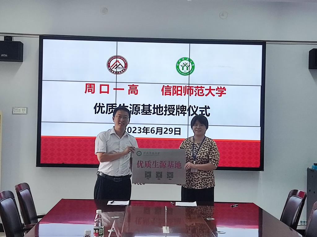 为了加强与重点中学之间的联系,建立双方友好合作的长效机制,共同搭建培养、选拔、输送优秀学生的良好平台,招生宣传工作组分别与周口第一高级中学、商水县第一高级中学签订了《建立“williamhill体育中文生源基地”协议书》,并为两校颁授了“优质生源地”牌。