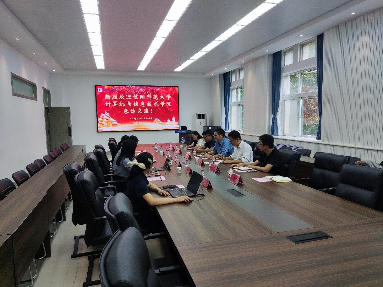 考察团一行首先到访了郑州大学计算机与人工智能学院,受到该院院长徐明亮及副院长宋玉的热情欢迎。一行人参观了计算机与人工智能学院的虚拟现实实验平台,教育部工程研究中心,随后双方进行了座谈。徐明亮分享了国家自然科学基金项目申报、学科建设等方面的经验及做法,冯岩介绍了我院国自科申报、科研团队组建等方面的痛点、难点,双方展开了热烈的讨论。